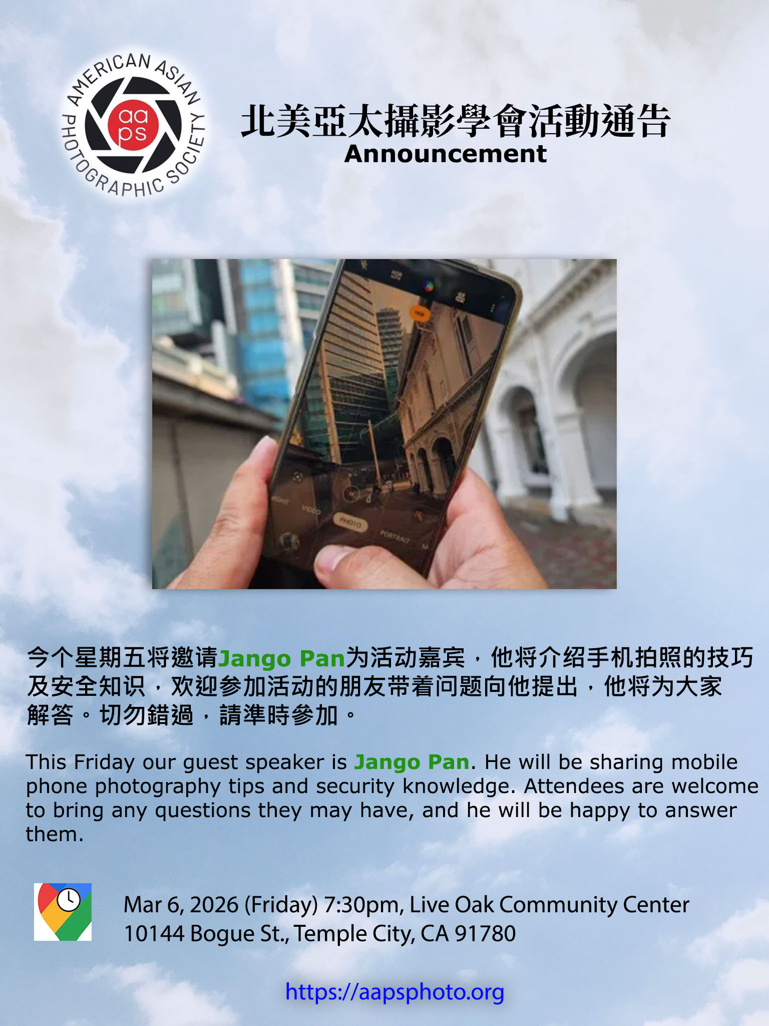 3/6/2026 Mobile Phone Photographyby American Asian Photographic Society (AAPS)on Posted on March 2, 2026
